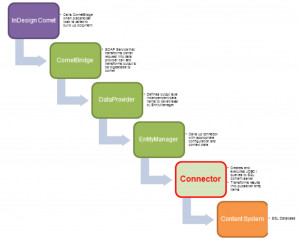The connector is called upon by the EntityManager module, that reads entity model configurations and calls appropriate commands on the connector to fulfill the queries initiated by the DataProvider manager.