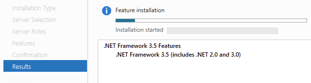 Screenshot of .NET 3.5 Installation on Windows 2012