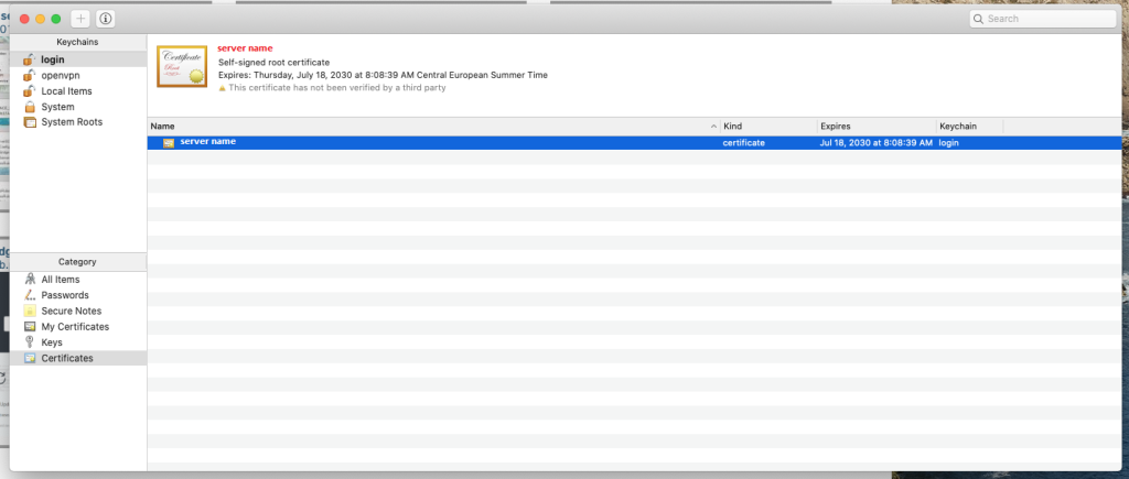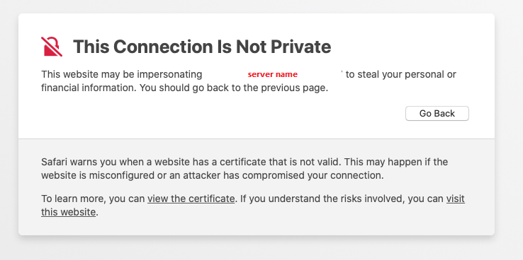 If the certificate changes, Safari may throw a message "Safari can’t open the page because Safari can’t establish a secure connection to the server server.name ". In such a case, delete the certificate and repeat the steps.