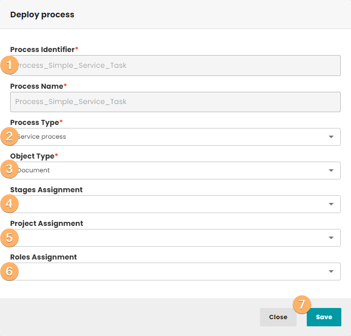 - Deploy: deploys the process to Camunda. This creates a new definition version of this process on Camunda. Only deployed processes can be started. See the explanation for the Deploy dialog below.