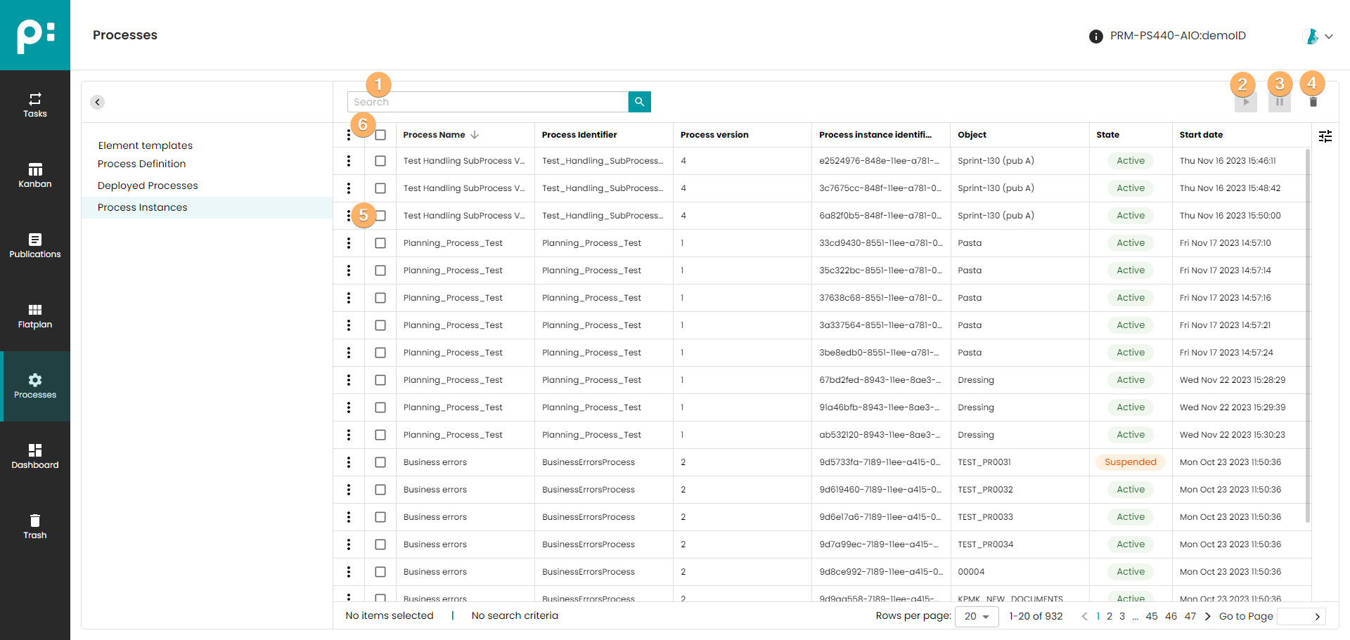 - The multi-selection context menu allows for deleting all revisions of process definition in one step.