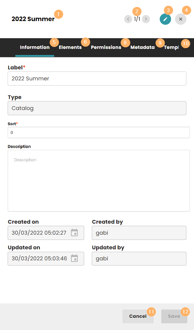 Here the user can edit or view the metadata (previously called publication and document parameters) for the PFD. Each metadata group is shown as a sub-tab.