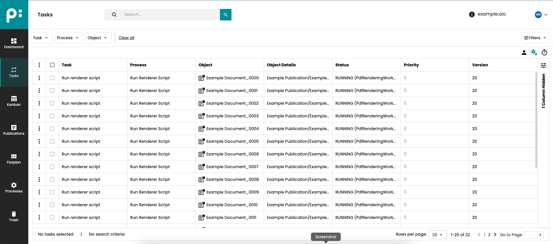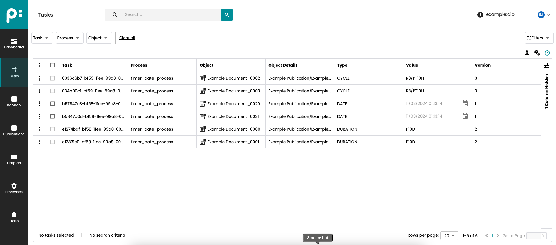 It is also possible to navigate from the task to the object it is related to. If the object type is Document, an icon to navigate to the edit mode of Flatplan is shown in the object column and the context menu items are shown (View and Edit).